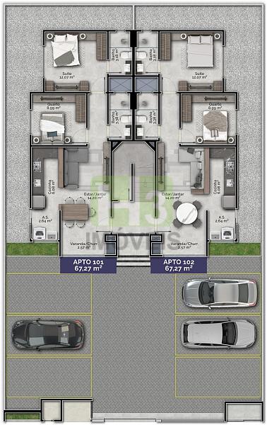 Dois dormitórios sendo um suíte
