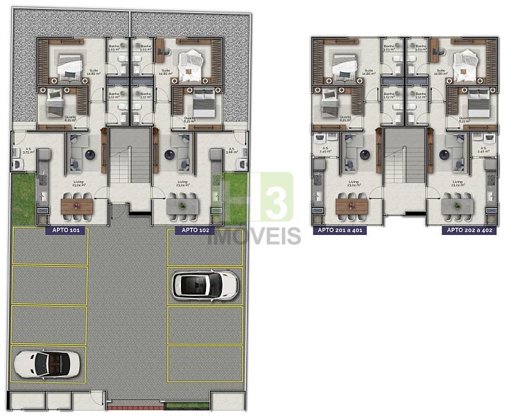 - ÁREA PRIVATIVA Tipo 62m ²;