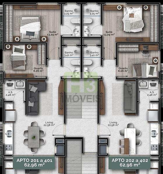 63,00 m² de área privativa